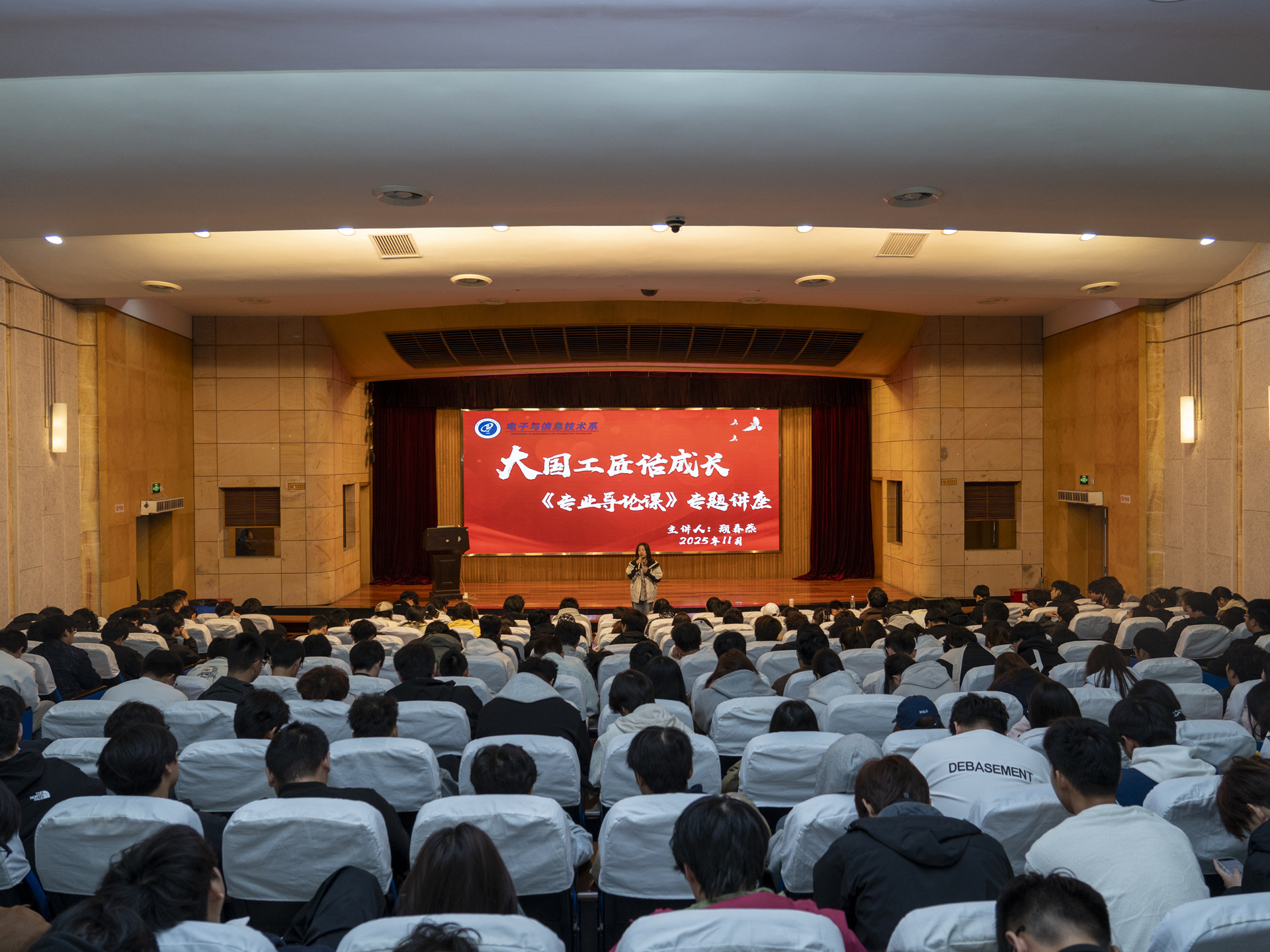 为进一步弘扬劳模精神、劳动精神、工匠精神,引导员工树立专业志向、明晰成长路径,11月8日上午,学院特邀中国电子科技集团公司第十四研究所雷达收发组建总装师、江苏省产业教授、公司思政导师、优秀员工顾春燕开展大国工匠进校园主题宣讲暨专业导论课程讲座活动。党群工作部部长祖国、电子与信息技术系主任刘佳、电子信息工程技术专业负责人戴慧、辅导员王雯及电子信息工程技术专业全体班主任出席活动,与267名新生共同聆听工匠故事、感悟职业精神,为新生专业成长注入“匠心”力量。