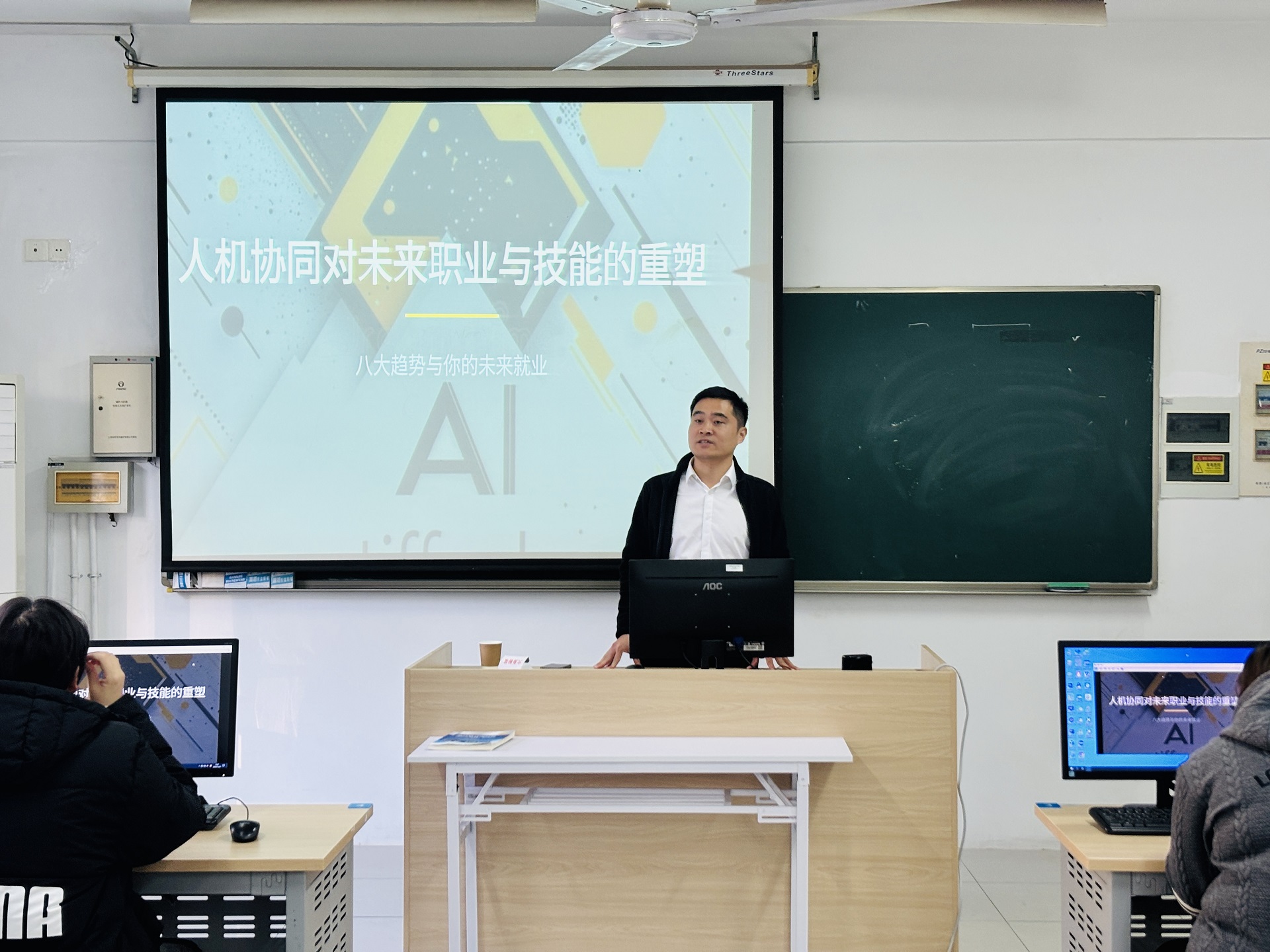 11月25日下午,电子与信息技术系邀请南京竹影信息科技有限公司创始人范玉峰走进课堂,为软件技术专业的大一新生带来了一场题为《人机协同对未来职业与技能的重塑》的专题讲座。讲座内容紧贴行业发展趋势,案例详实,现场气氛活跃,互动热烈,为初入大学校园的学子们指明了在人工智能时代下的学习方向与职业路径。