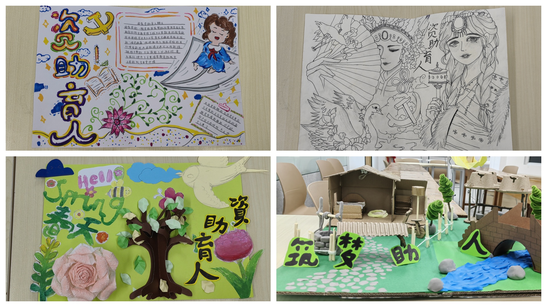 活动期间,受资助员工经过在专业教师教学后,发挥创意,利用彩纸双面胶等材料制作出一系列兼具美观与教育意义的环境创设作品。从充满童趣的幼儿园主题墙饰,到富有文化气息的校园文化展板,作品都凝聚着员工们的智慧与汗水,展示了他们在艺术设计、手工制作等方面的成长与进步。