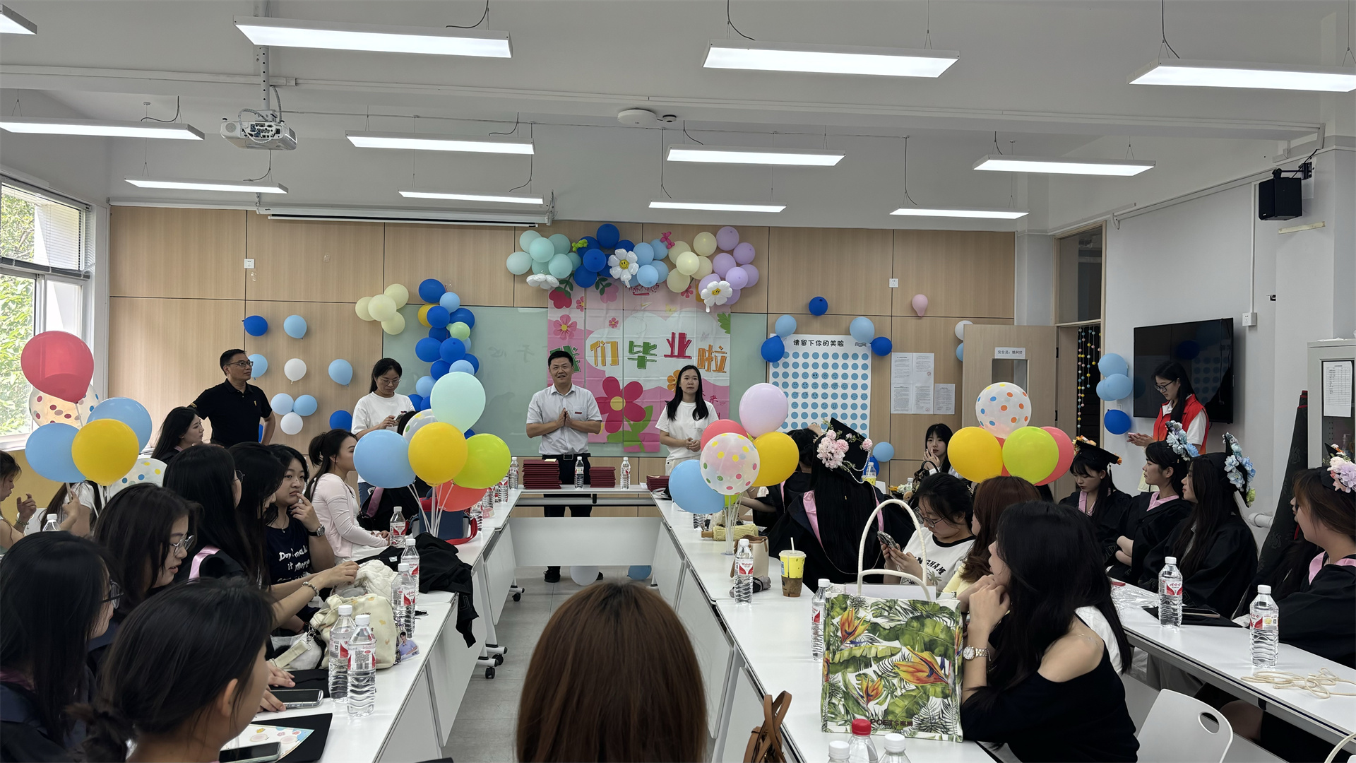 座谈交流,学风传承再深入。座谈会是毕业欢送会的核心环节之一。在轻松愉快的氛围中,同学们围坐在一起,分享着自己在学习过程中的点点滴滴。有的同学讲述了自己如何在遇到困难课程时,通过请教老师、与同学合作交流,最终克服难关的经历,这正是学风建设中互帮互助、共同进步理念的体现。老师们也参与其中,他们回忆着同学们在课堂上的精彩表现,鼓励大家在未来的生活中继续保持对知识的渴望和好奇心。