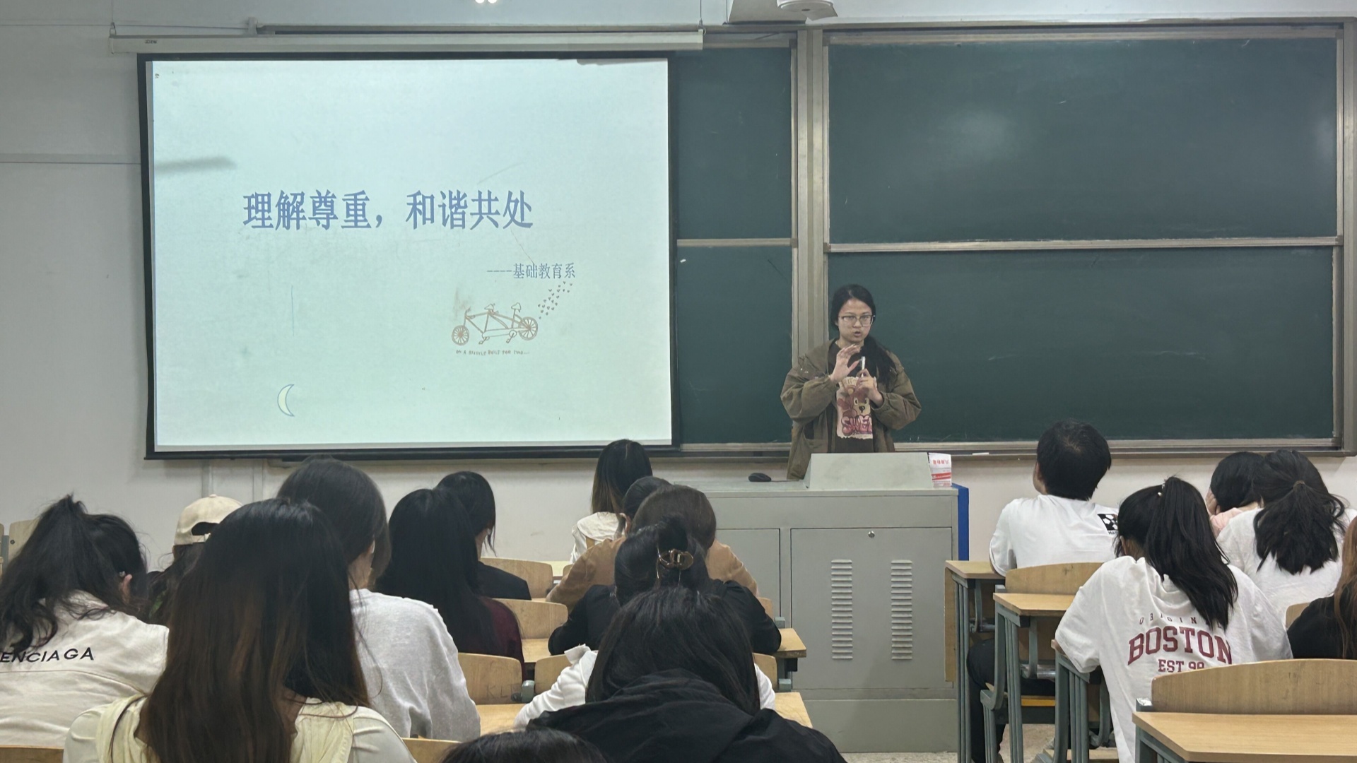 为巩固提升文明宿舍、标兵宿舍的持续创建氛围,不断强化员工的心理健康教育,更好的营造安全和谐的宿舍环境,基础教育系以“理解尊重 和谐共处”为主题于6月20日组织员工干部、相关厅室长在9207教室开展主题班会。