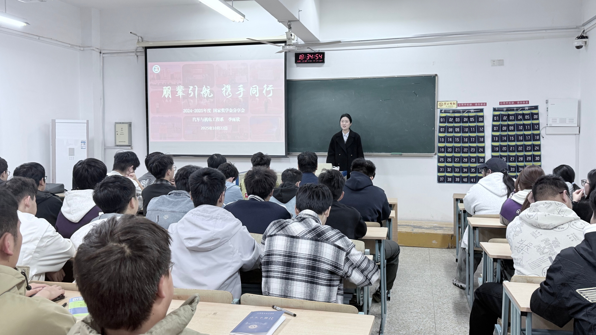 为充分发挥优秀员工的榜样引航作用,10月22日,汽车与机电工程系在9307教室开展“朋辈引航 携手同行”经验分享会。本次分享会邀请汽车与机电工程系2025年国家奖学金提名者李雨欣学姐作经验分享,近百名大一员工代表参加。