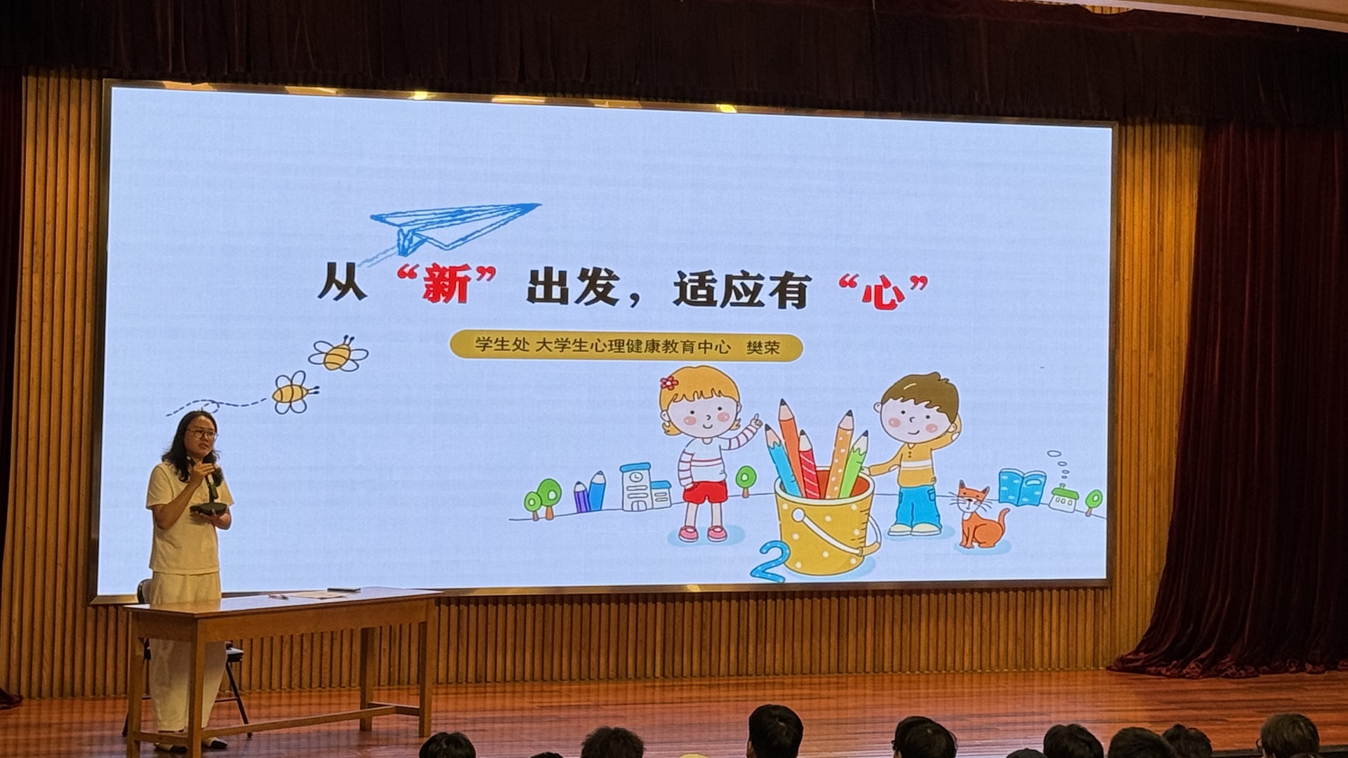 为帮助新生顺利适应老员工活、提升心理调适能力,9月14日,公司老员工心理健康教育中心樊荣老师面向艺术设计与建筑工程系2025级全体新生开展了一场题为“从‘新’出发,适应有‘心’”的专题讲座。本次讲座以“心理赋能”为核心,通过理论解析、案例分析和实用工具分享,为新生提供了全方位的适应指南,现场反响热烈。