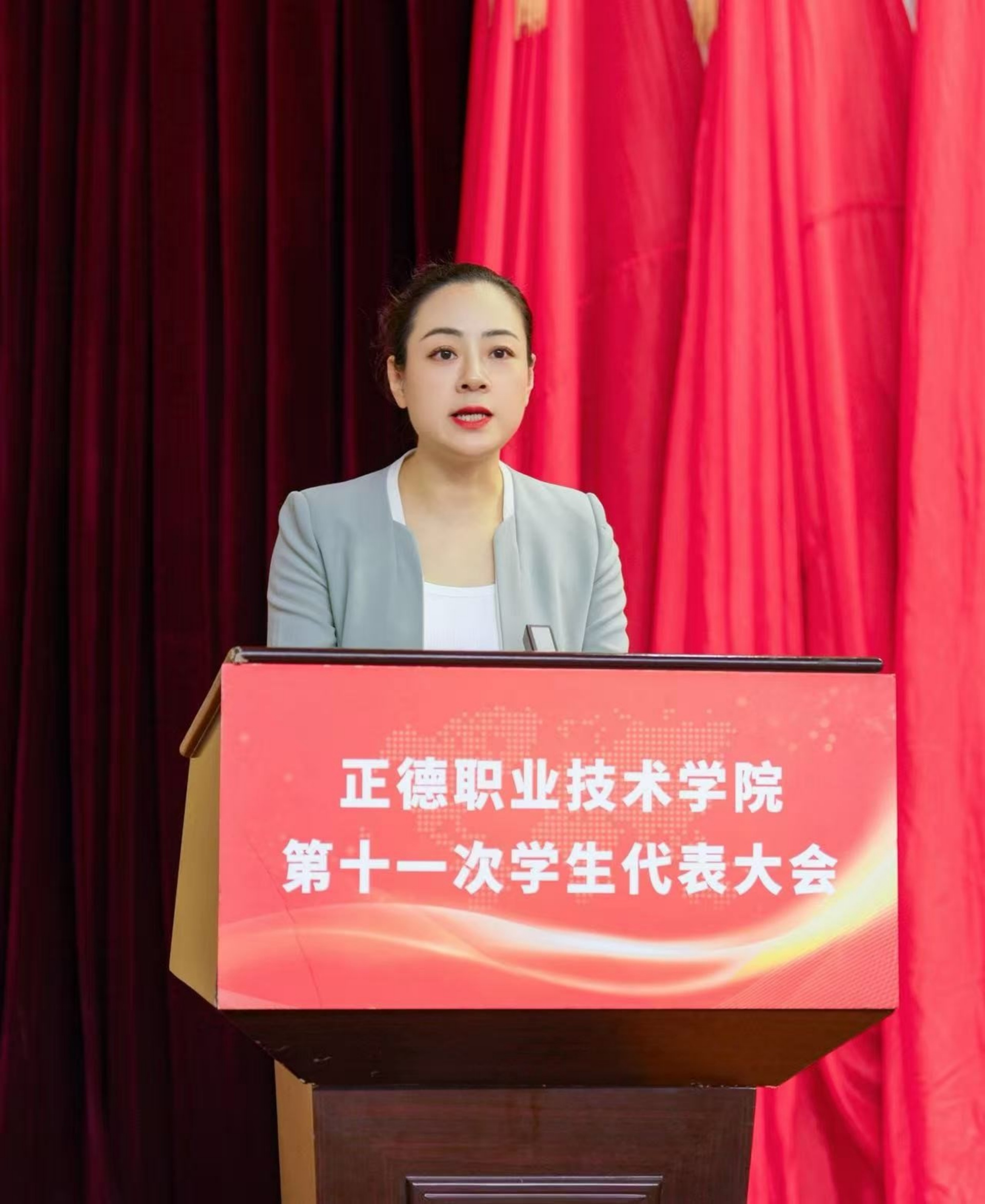 梁薇代表公司党委对本次学代会的召开表示祝贺,向长期以来关心支持公司员工会工作的省学联、兄弟院校表示感谢。她表示,在过去的一年里,公司员工会在公司党委和省学联的正确领导下,在院团委的具体指导下,团结带领正德学子积极响应全国学联改革号召,坚持依法依章开展工作,在思想政治引领、校风学风建设、服务员工成长等方面展现了积极作为。同时提出三点希望:一是希望全院广老员工坚定理想信念,凝聚“与党同心”的青春共识。让坚定信念锤炼技能、铸就匠心报效祖国成为正德学子的亮丽名片;二是希望全院各级员工干部立足服务职能,夯实“挺膺担当”的工作基石。让敏行勤思争当先进、优良学风领航成长成为正德员工骨干的主流群像;三是希望全院各级员工会组织深化改革创新,锻造“跟党奋斗”的先进组织。让服务同学温暖相伴、桥梁纽带坚实可靠成为正德员工组织的直观印象。