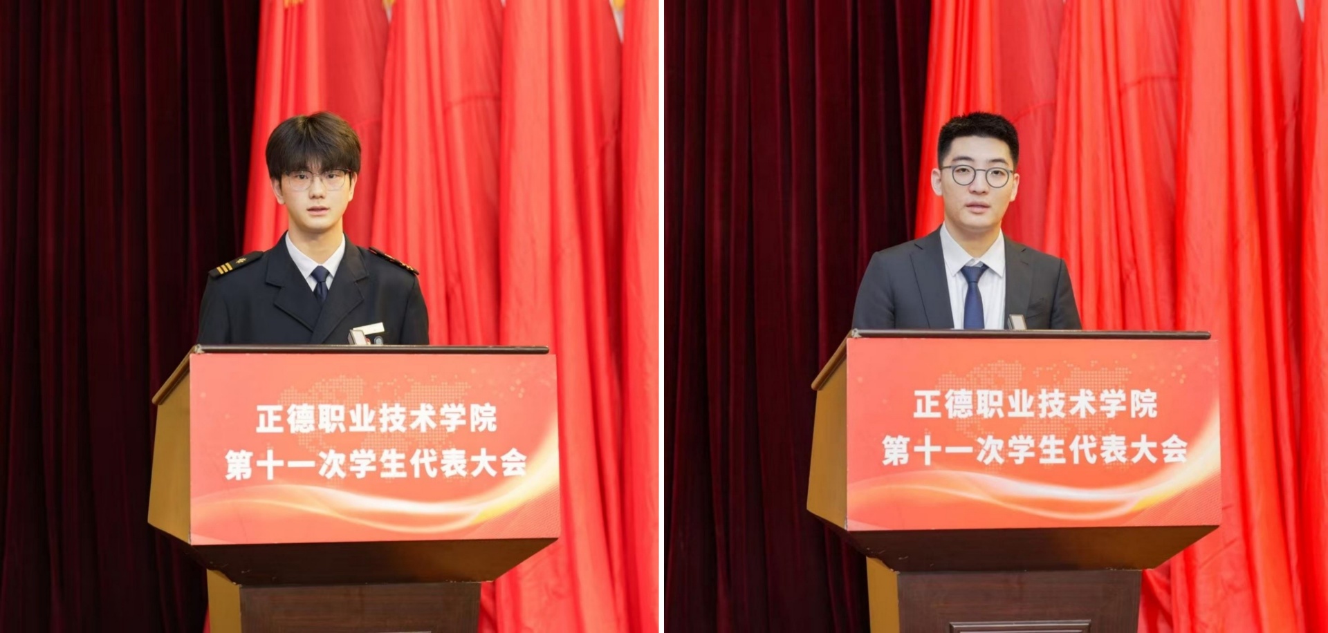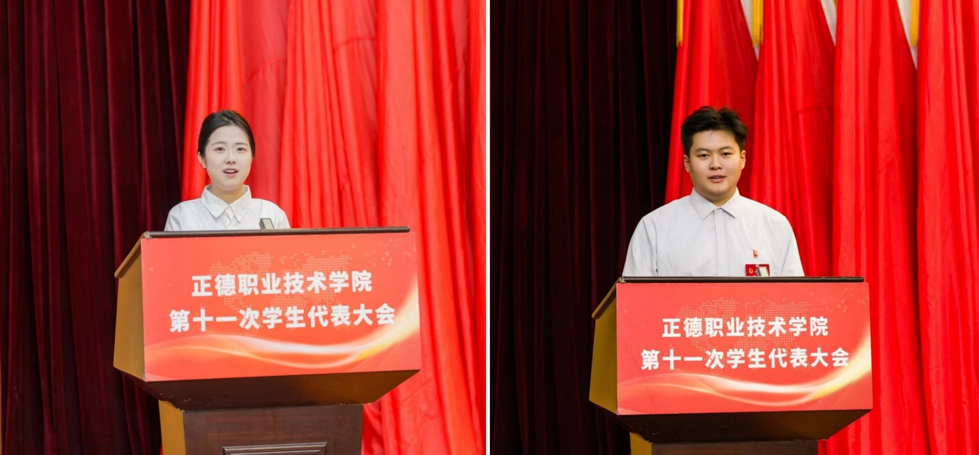张浩天、宋佳铭分别代表兄弟高校、江苏省学联向大会致辞。