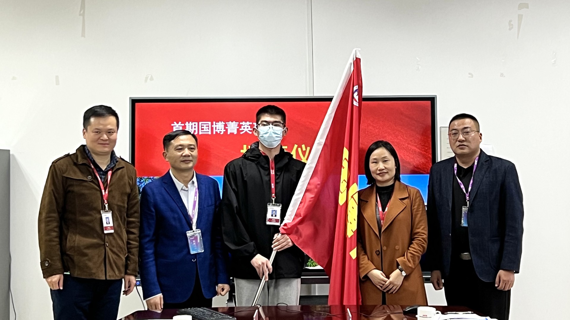 陆松介绍了首期“国博菁英班”筹备情况。自去年10月江爱华副经理带队首次赴国博调研考察以来,到今年10月江爱华副经理再次带队赴国博洽谈交流,正德学院和国博电子的校企合作逐步成型、成熟、成效、成势。首期“国博菁英班”面向智能制造、智能装备、信息技术专业群,通过线上报名、系部选拔、企业面试,最终遴选了18名优秀员工组班。江爱华、孙春妹一同为“国博菁英班”授旗。