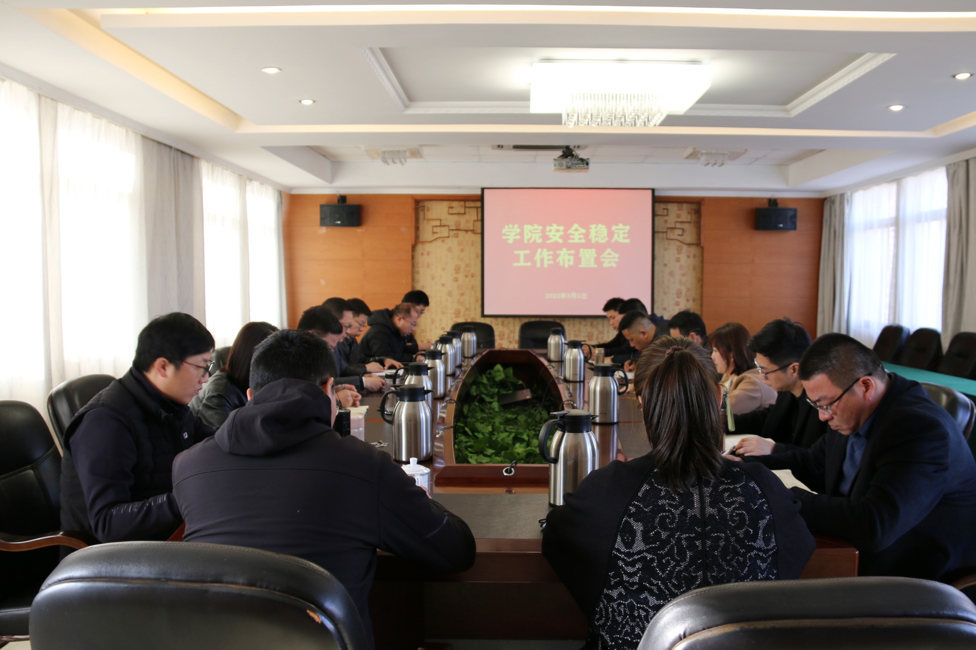 会上,传达学习了上级有关安全稳定工作会议精神。高斌、赵凯雷、任慈分别就校园安全、疫情防控、员工关爱等工作进行了布置。
