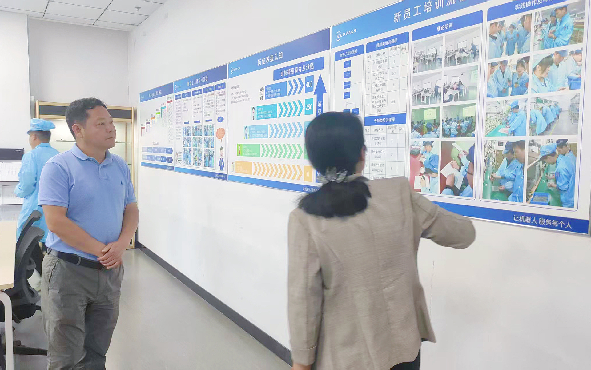 孙永荣对科沃斯的热情接待表示感谢,并对双方在产品检测实训中心共建工作中获得的进展表示认可。他表示,此次回访一方面是为了了解员工实习情况从而优化专业人才培养;另一方面,学院围绕智能装备产业链开设了包含省级高水平骨干专业——电子信息工程技术在内的多个相关专业,在专业设置上与科沃斯产业发展高度契合,双方可以围绕机器人的生产、调试、售后等方面构建深层次的合作。他强调,希望校企双方能从共建共享产品测试中心、技术服务、人才培养、高质量实习就业等多维度深层次开展合作创新,推动校企协同发展再上新台阶。