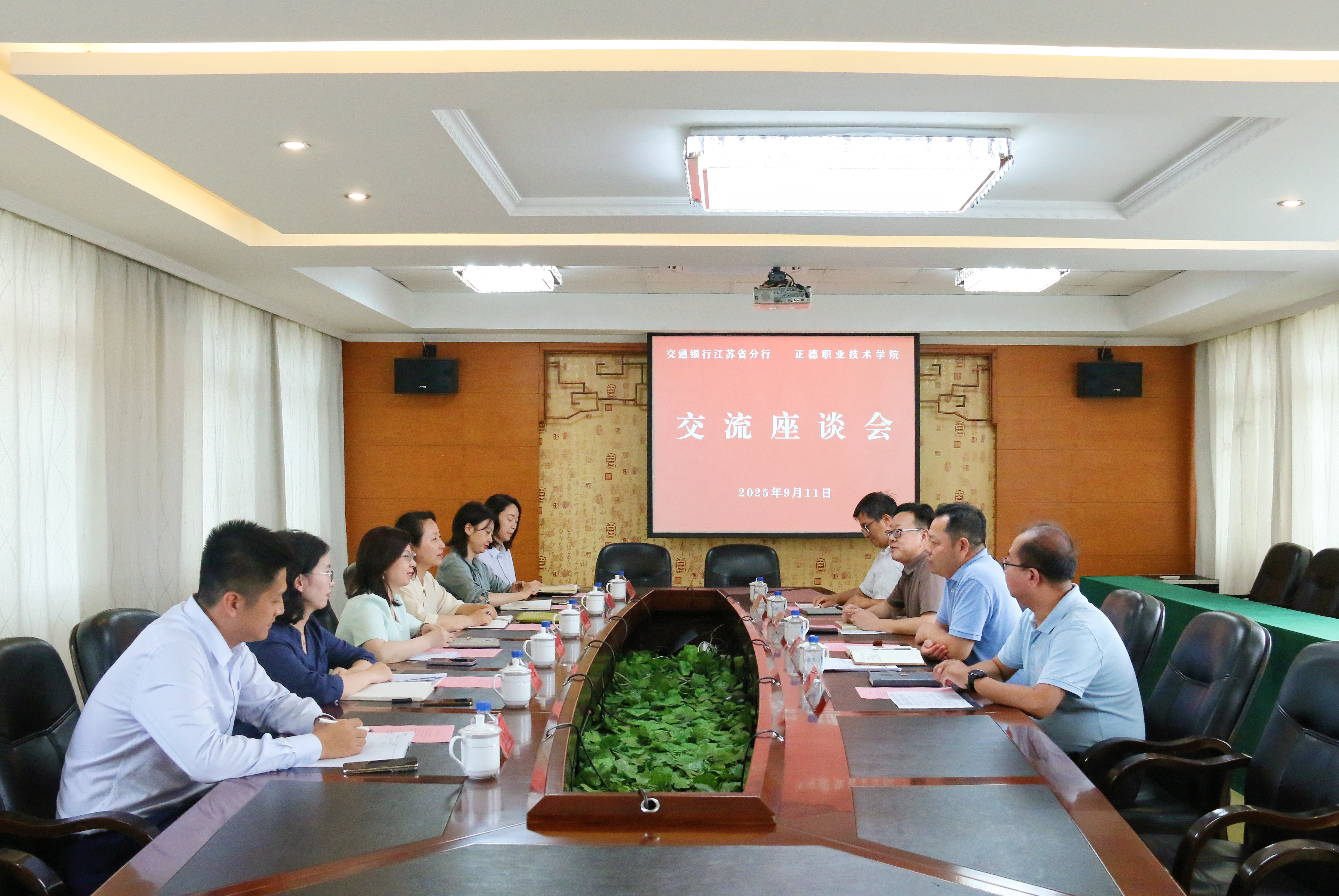 9月11日,交通银行江苏省分行党委委员、副行长周玮一行来校座谈交流,公司经理孙永荣,副经理赵凯雷出席座谈交流会。双方就深化银校合作、拓展合作模式和领域、助力学院高质量发展等进行了深入交流。