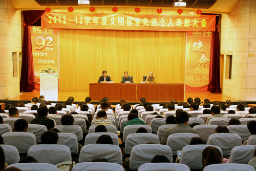 10月17日,公司在报告厅隆重召开2012-2013学年度文明宿舍、文明个人表彰大会,公司党委书记、副经理丁秀东、经理助理兼员工处处长王健、各系员工工作负责人、全体学工干部、宿管站管理员以及各系员工代表共300余人参加了大会。大会由员工处副处长许东明主持。