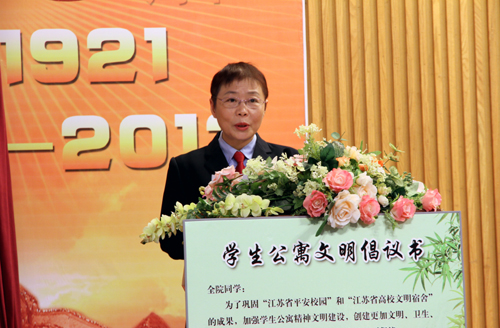 经理助理、员工处处长王健宣读了表彰决定。过去的一学年里,公司以巩固“江苏省高校文明宿舍”、“江苏省平安校园”创建工作成果为动力,继续深化文明宿舍、文明个人创建工作,在员工公寓积极推进精细化管理,大力开展“孝、宽、诚、责、毅”五字教育和“三个一”活动,着力加强精神文明建设,讲安全、讲文明、讲礼貌、讲卫生、讲规范、讲秩序蔚然成风,涌现出一大批文明宿舍和文明个人。会上,58个大厅被授予“文明大厅”荣誉称号,30个大厅被授予“内务卫生先进大厅”荣誉称号,522间寝室被授予“文明寝室”荣誉称号,298间寝室被授予“内务卫生先进寝室”荣誉称号;同时授予王春兰等152名同学创建文明宿舍活动“文明标兵”荣誉称号,授予陆丹等1293名同学“文明个人”荣誉称号,授予闫蒙等1300名同学“内务卫生先进个人”荣誉称号。大会向获得各项荣誉的代表先后颁发了荣誉证书。先进个人代表、辅导员代表、先进公寓代表分别作了典型发言。