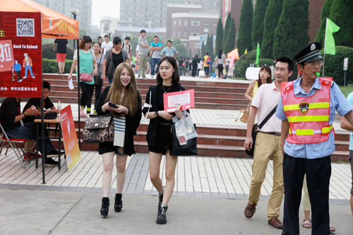 全家出动陪新生来校报到