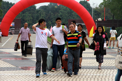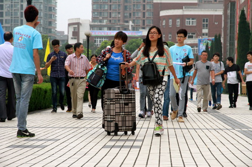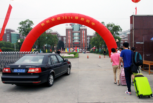 红彤彤的巨形拱门,迎风翻飞的五彩旗帜,到处是脸带笑容的志愿者,到处是肩扛手提行李的新生家长,9月5日下午和9月6日,2000多名来自全国各地的2014级新生来到公司报到,节日的气氛洋溢在校园里。