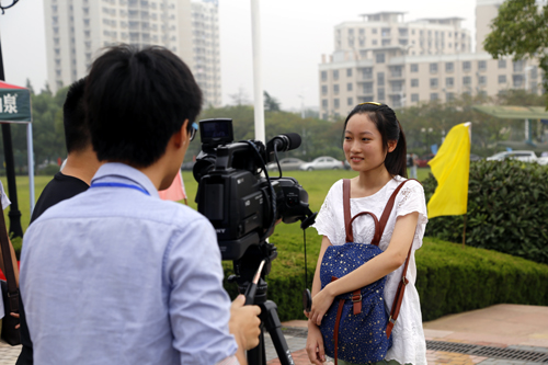 新生接受校园电视台采访