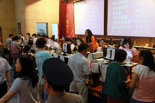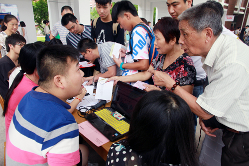 电子与信息技术系接待人员为新生办理报到手续