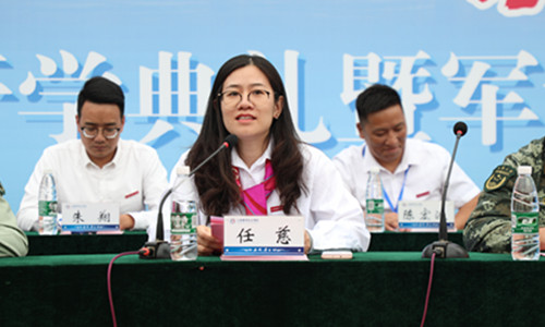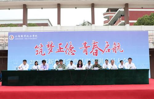 副经理任慈简要介绍前来承训的武警江苏总队机动支队,并对全体官兵表示热烈的欢迎。她在发言中讲到“这是正德学院建院21年以来最凉爽的一次军训”引发同学们热烈响应。她对参加军训的全体新同学表示最美好的祝愿,并时指出参加军训是作为一个公民应尽的义务和职责,也是加强国防建设和成长成才的需要。同时对同学们提出三点要求:第一、端正态度,服从命令。第二、全力投入,顽强拼搏。第三、劳逸结合,保护好自己。