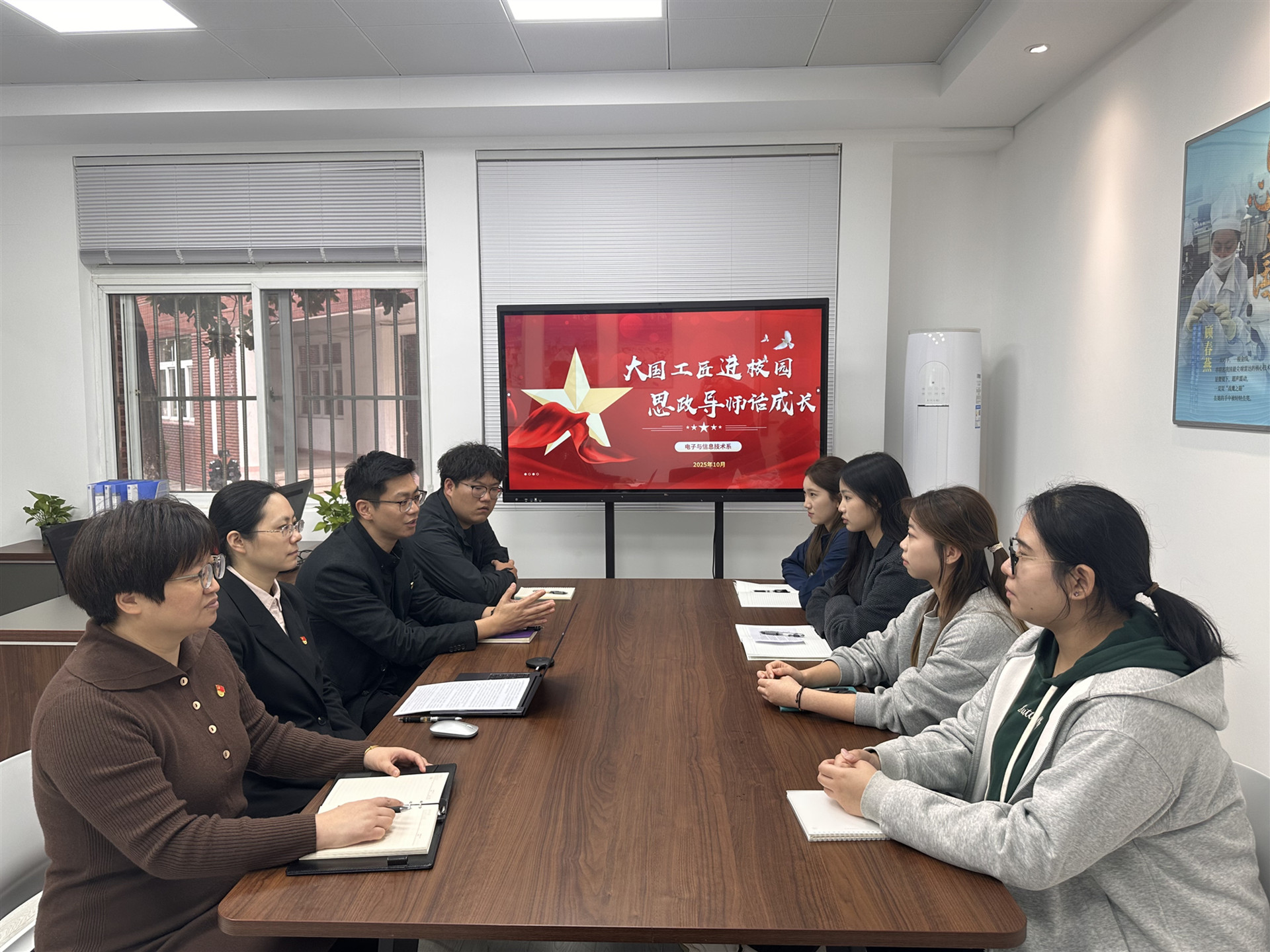 为进一步弘扬劳模精神、劳动精神、工匠精神,提升员工职业素养,10月27日下午,电子与信息技术系在大国工匠工作室举办“大国工匠进校园,思政导师话成长”活动。电子与信息技术系党支部书记、副主任赵欣,电子信息工程技术专业负责人戴慧以及电子信息工程技术专业的员工代表共同参加了此次活动。