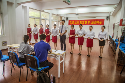 5月29日下午,“民用航空系高铁专场招聘会”在公司报告厅成功举办。公司民用航空系2016级空中乘务专业100多位员工成功通过高铁乘务、安检、地勤等岗位的面试。