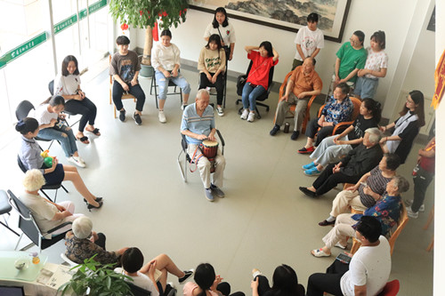 同学们为老人们精心编排安排舞蹈、唱歌等节目,给他们单调的生活送去一份欢笑、一点温暖。和老人玩击鼓传花环节更是把气氛推到了高潮,我们在愉快的氛围结束了本次活动。